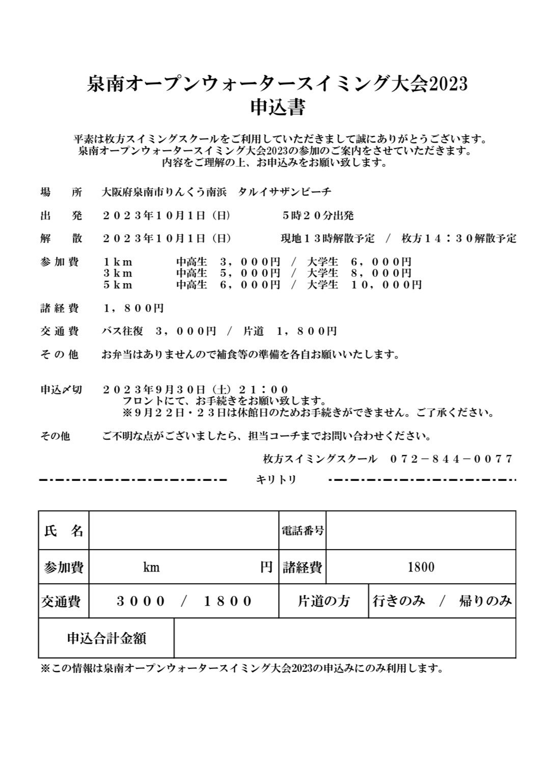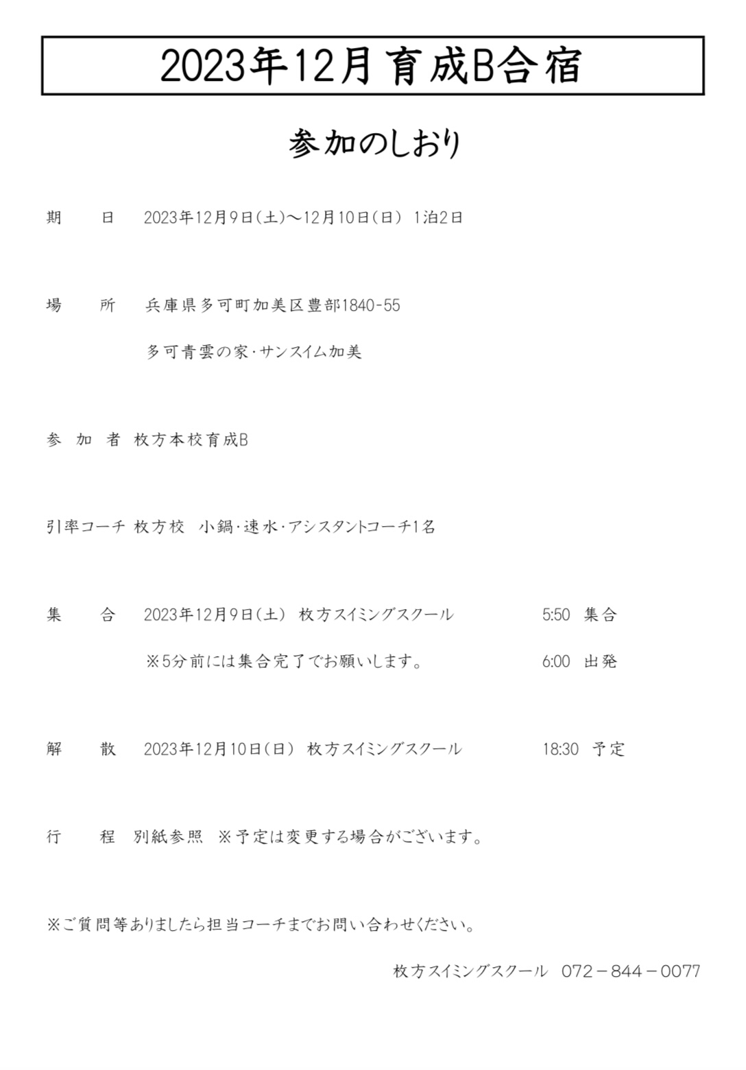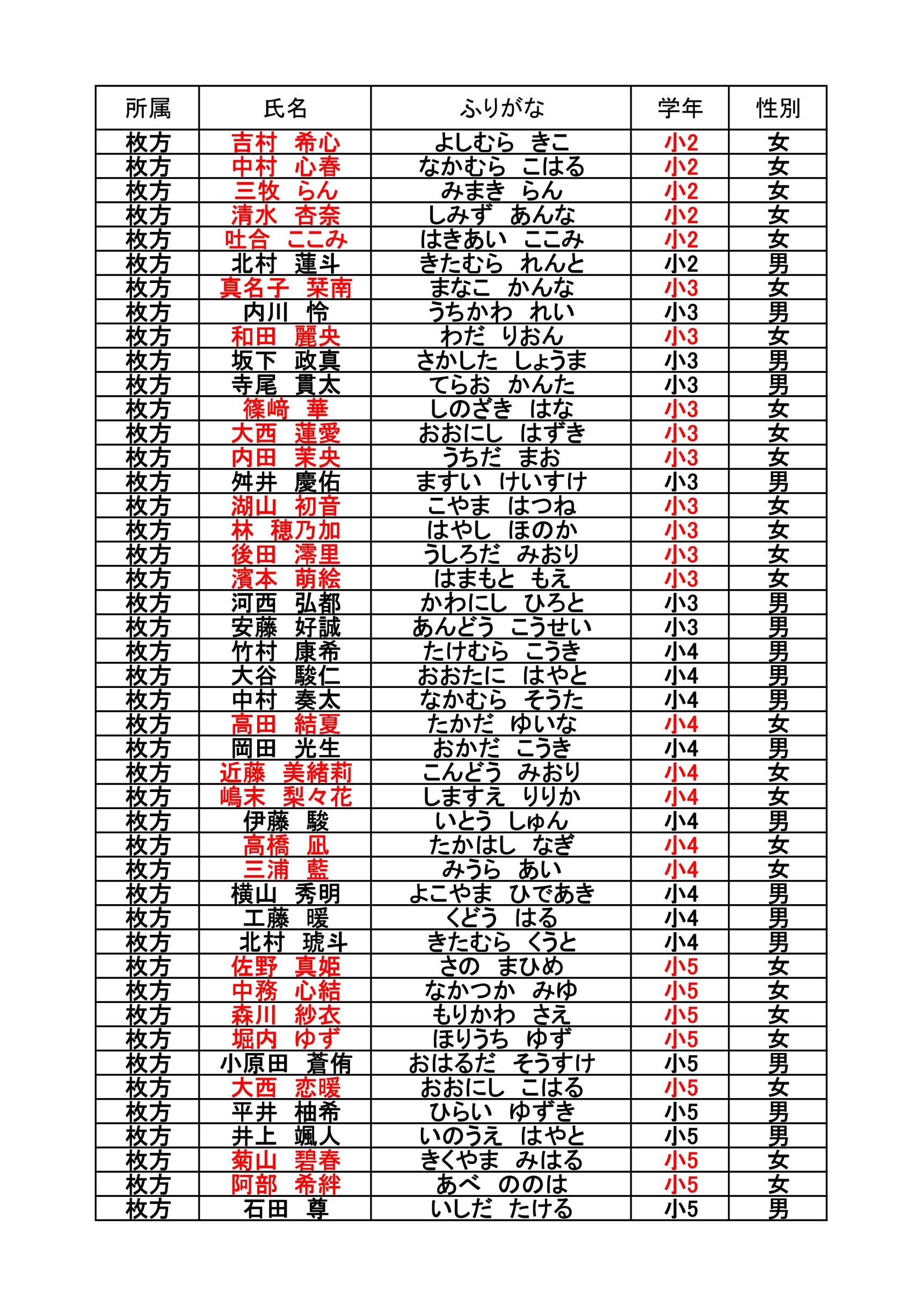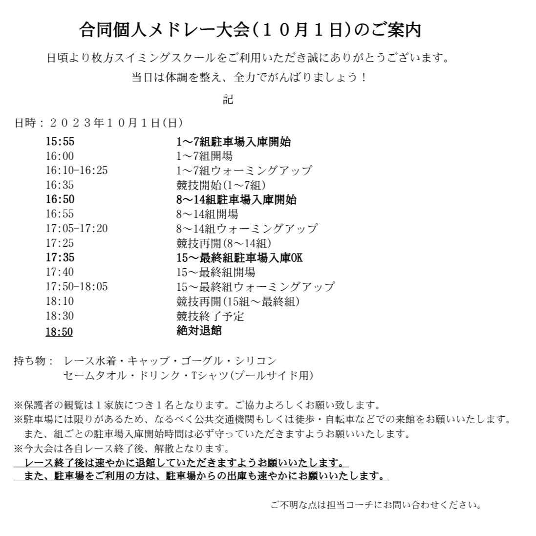 いつも枚方スイミングスクール選手育成コースにご協力いただきありがとうございます。