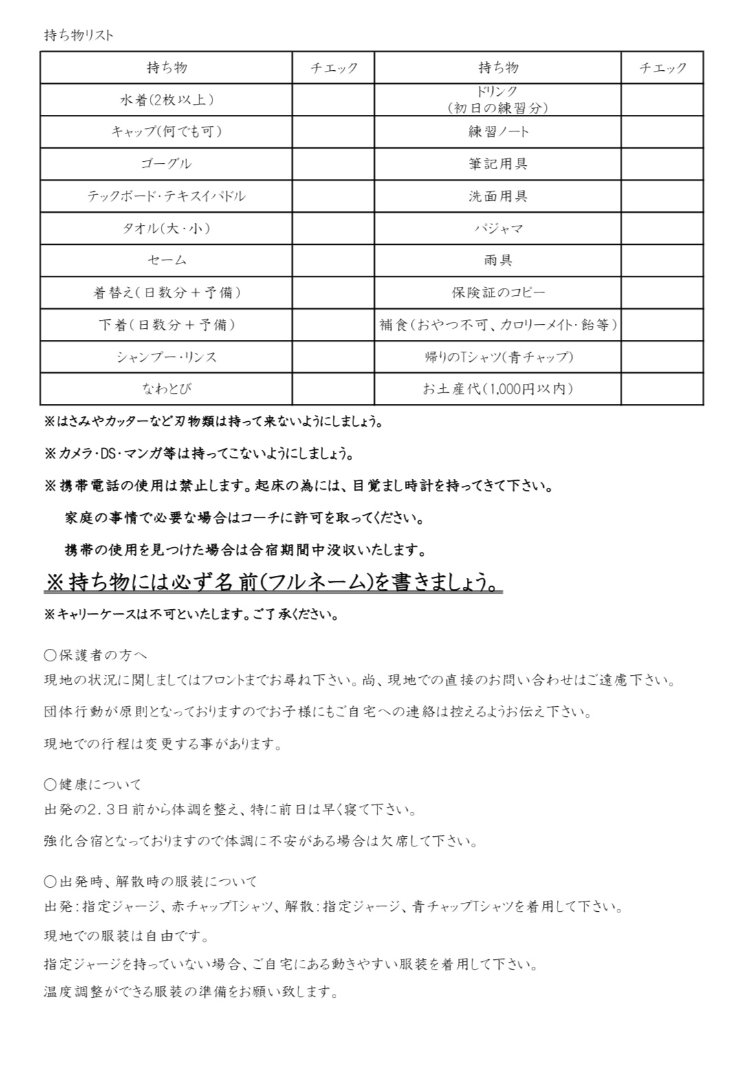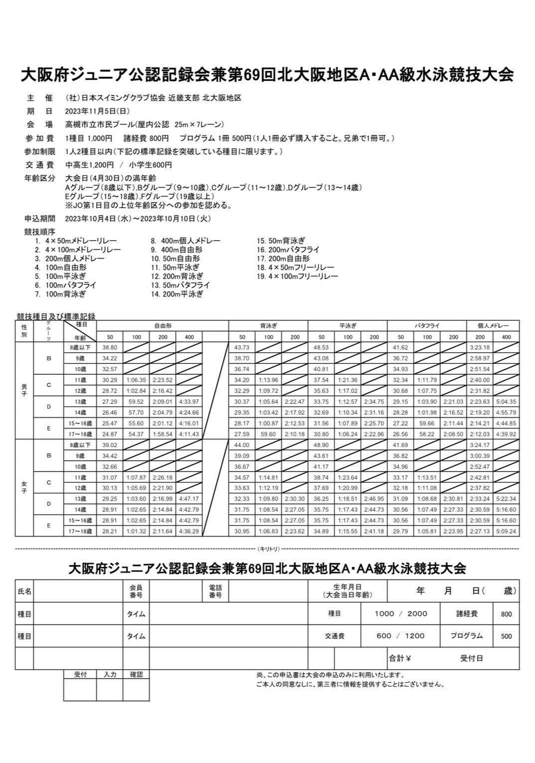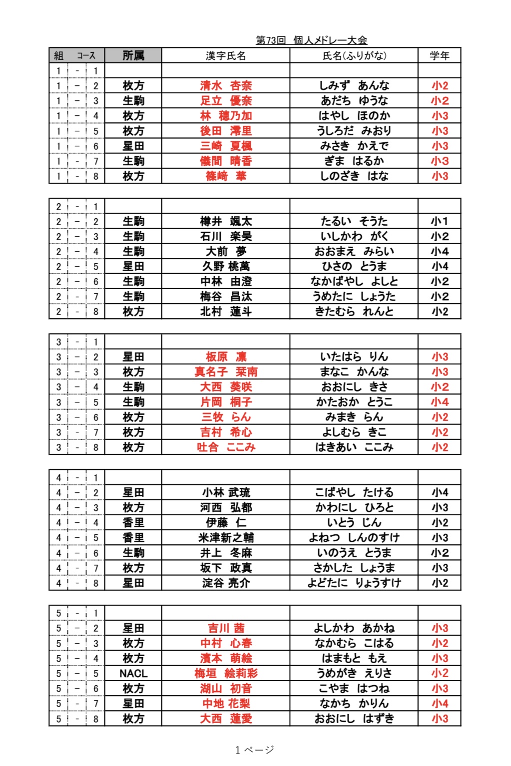 1月27日・28日に開催予定の浜名湾長水路選手権水泳競技大会のエントリー確認になります。