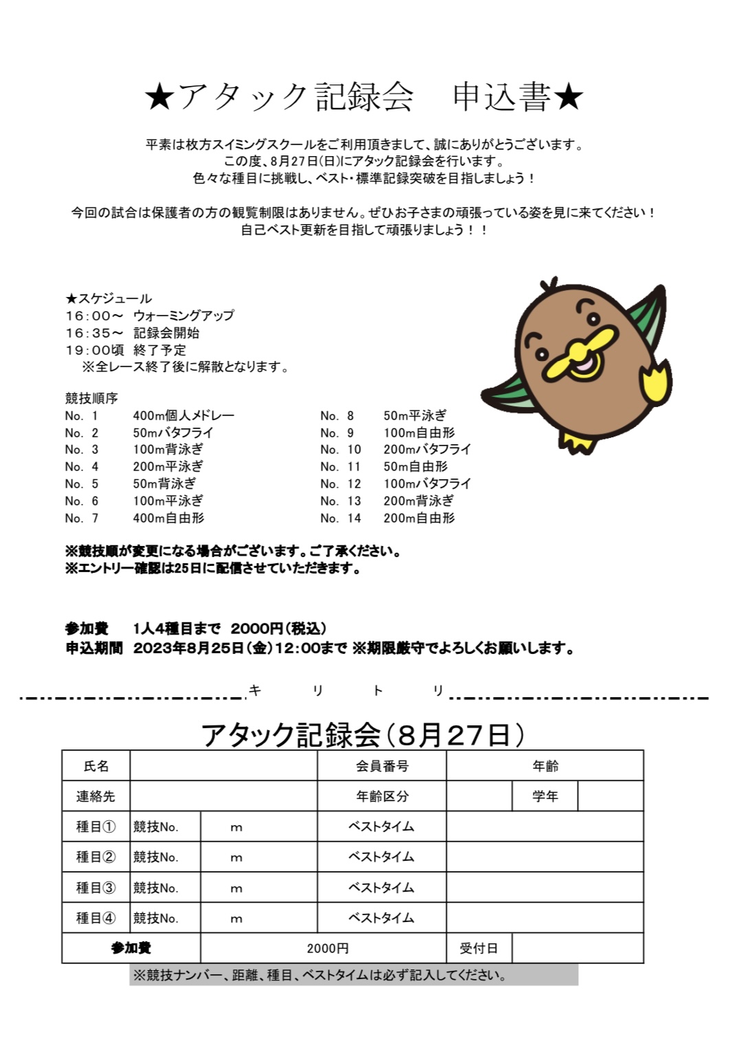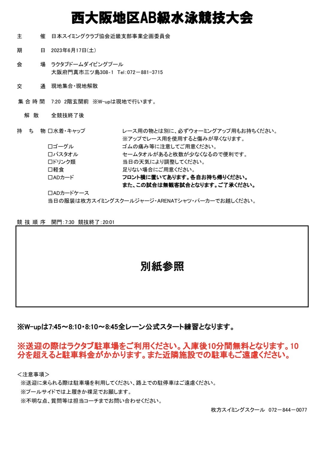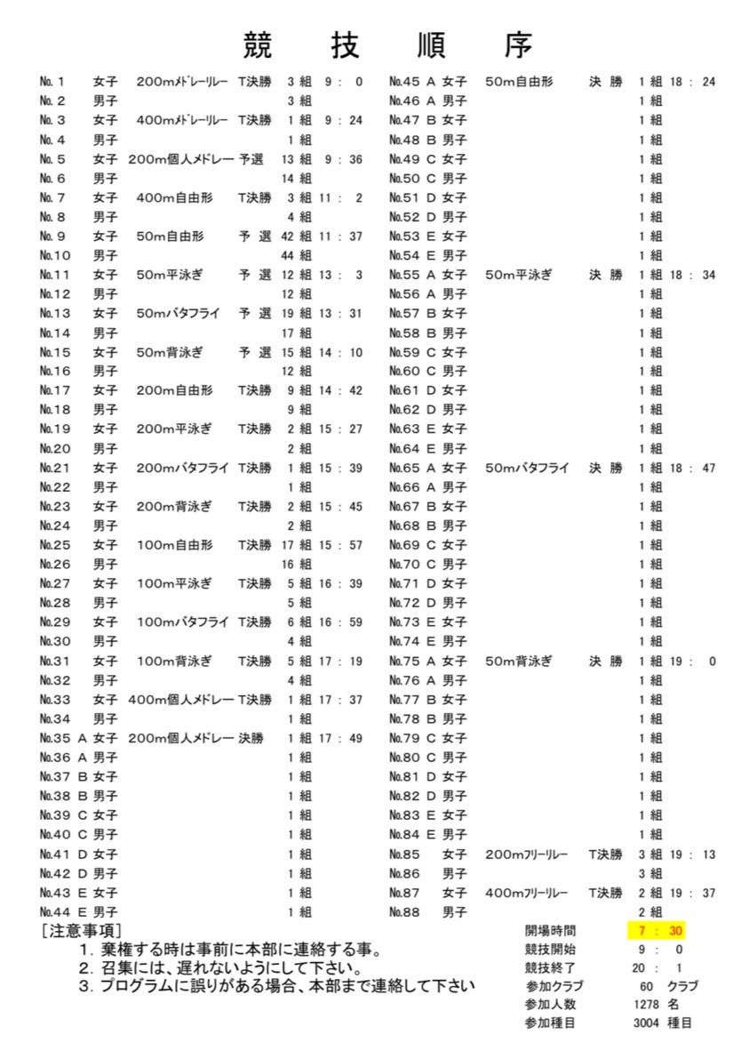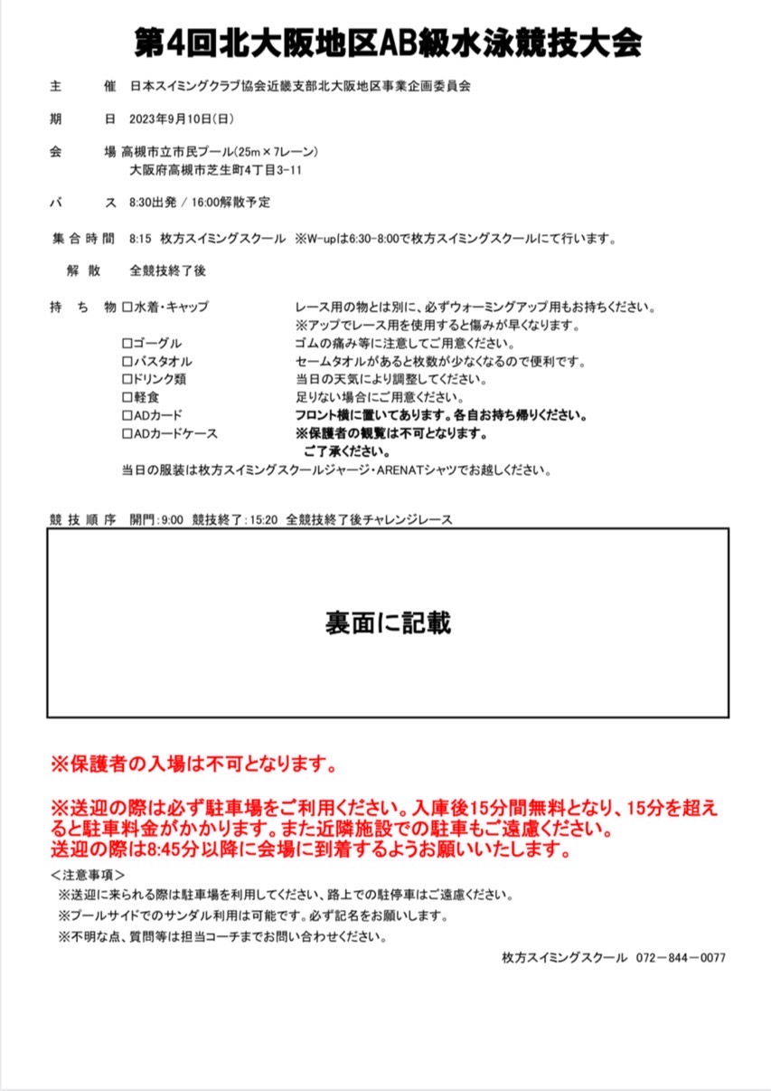 平素は枚方スイミングスクール選手育成コースのご理解・ご協力いただき誠にありがとうございます。