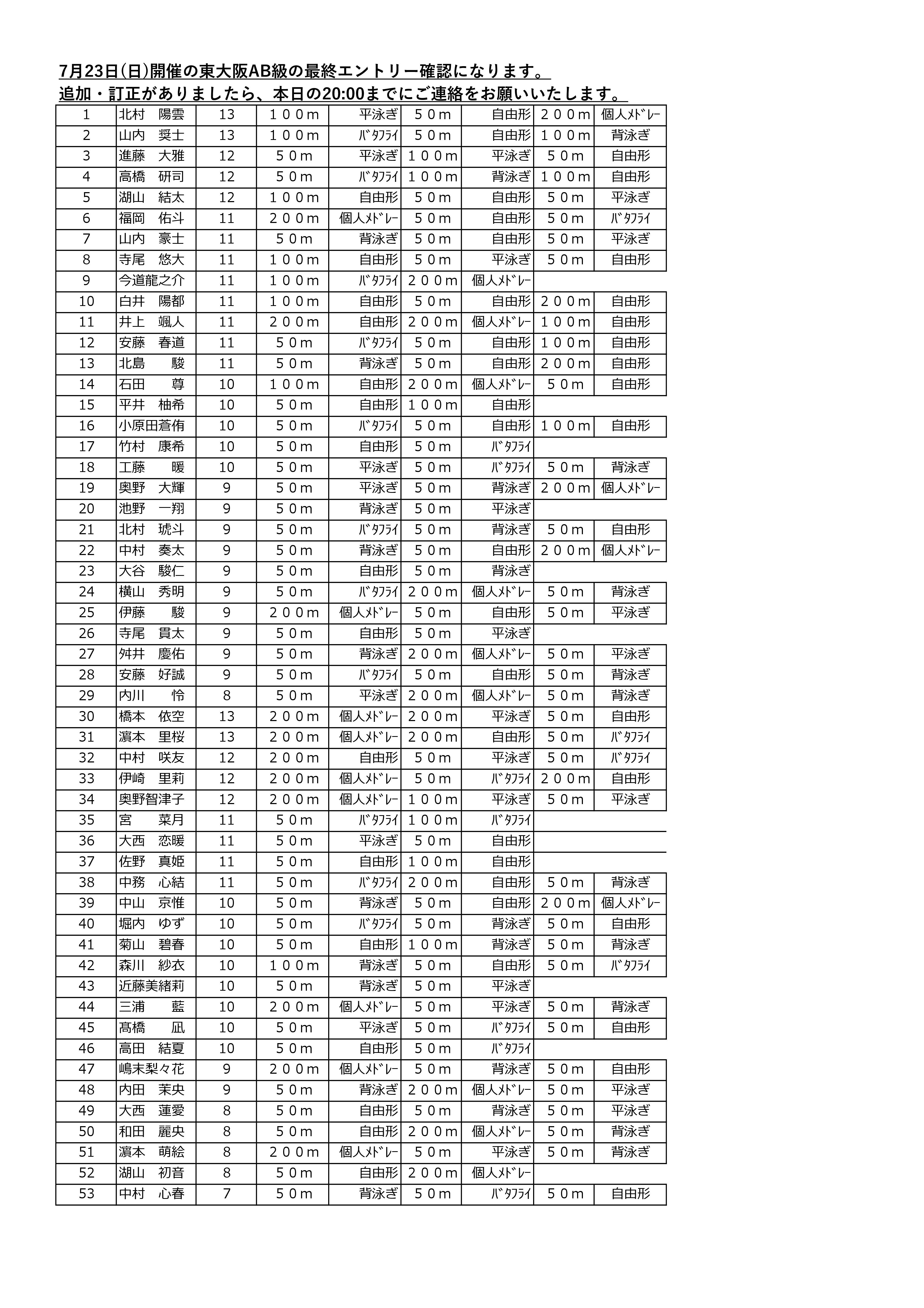 平素は枚方スイミングスクール選手育成コースにご理解ご協力いただきありがとうございます。