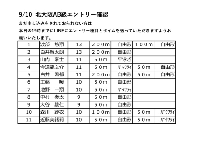田辺OWSの要項を明日から配布させていただきます。