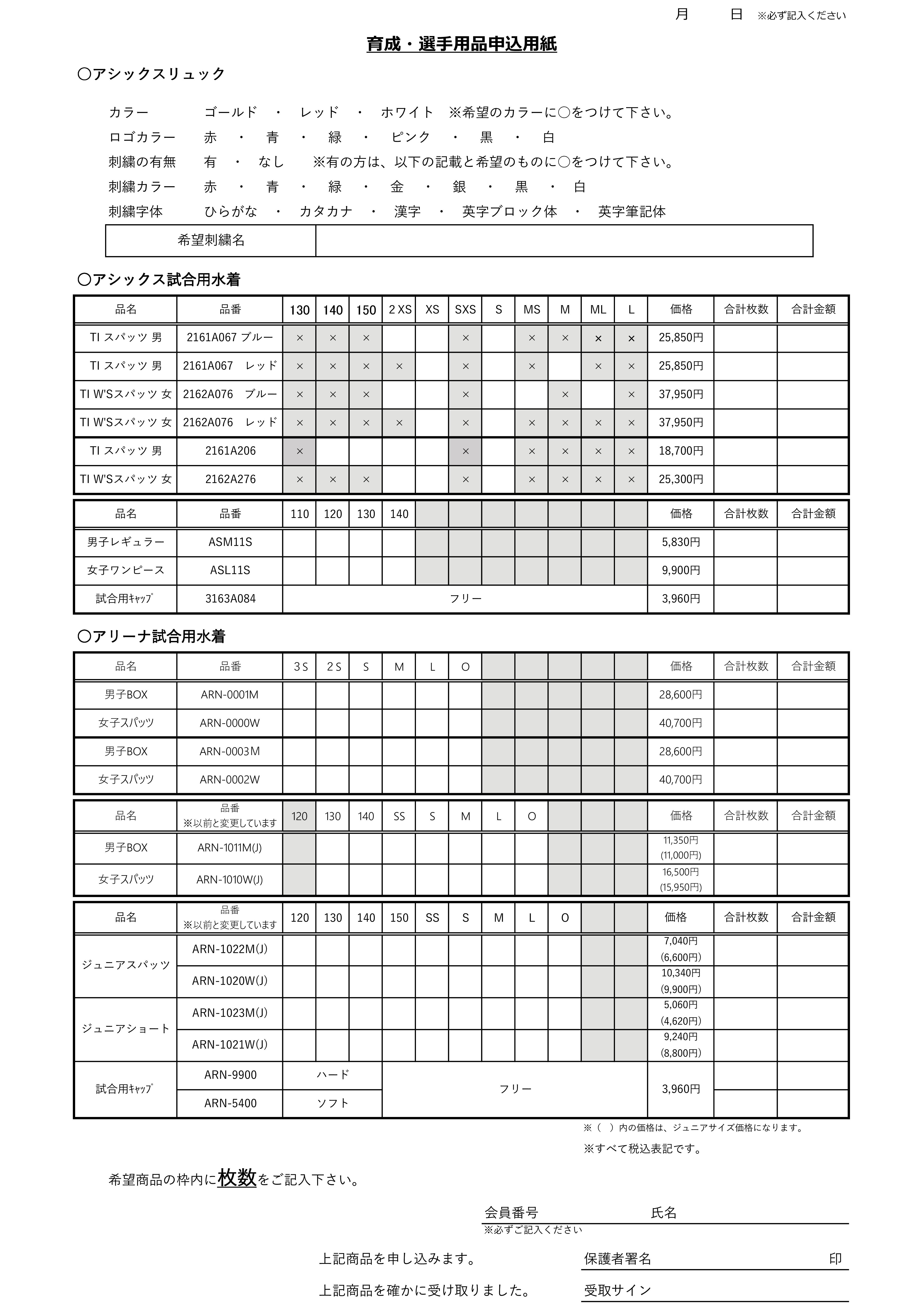 選手・保護者の方、ご確認よろしくお願いします。