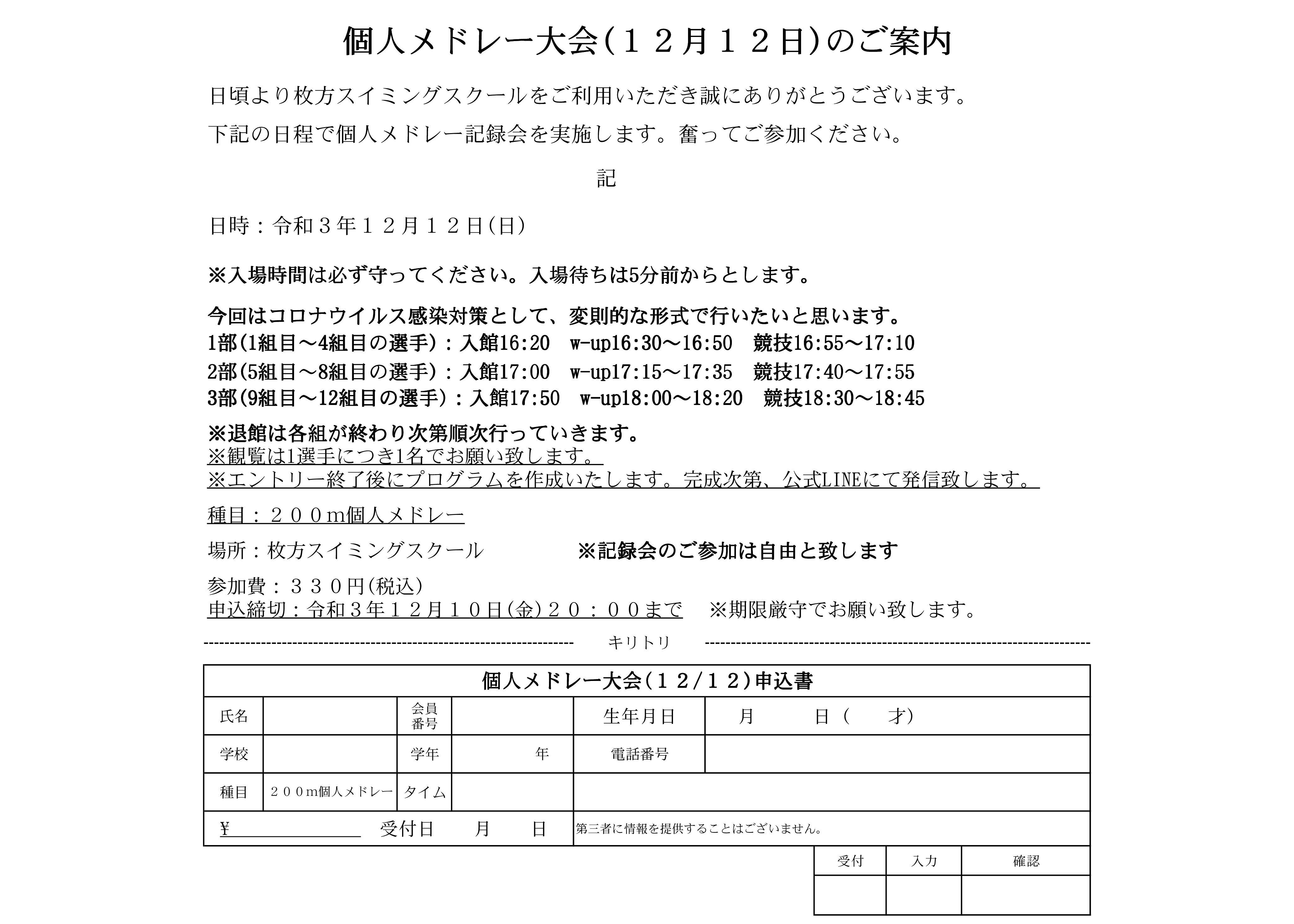 いつも枚方スイミングスクール選手育成コースにご理解ご協力いただきありがとうございます。